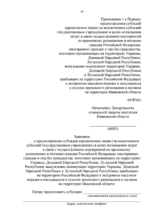Постановление Правительства Ивановской области от 21.09.2022 N 515-п "Об утверждении Порядка предоставления субсидий юридическим лицам (за исключением субсидий государственным учреждениям) в целях возмещения затрат в связи с осуществлением мероприятий по временному размещению и питанию граждан Российской Федерации, иностранных граждан и лиц без гражданства, постоянно проживающих на территориях Украины, Донецкой Народной Республики, Луганской Народной Республики, вынужденно покинувших территории Украины, Донецкой Народной Республики и Луганской Народной Республики, прибывших на территорию Российской Федерации в экстренном массовом порядке и находящихся в пунктах временного размещения и питания на территории Ивановской области"