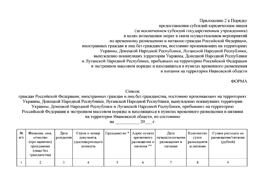 Постановление Правительства Ивановской области от 21.09.2022 N 515-п "Об утверждении Порядка предоставления субсидий юридическим лицам (за исключением субсидий государственным учреждениям) в целях возмещения затрат в связи с осуществлением мероприятий по временному размещению и питанию граждан Российской Федерации, иностранных граждан и лиц без гражданства, постоянно проживающих на территориях Украины, Донецкой Народной Республики, Луганской Народной Республики, вынужденно покинувших территории Украины, Донецкой Народной Республики и Луганской Народной Республики, прибывших на территорию Российской Федерации в экстренном массовом порядке и находящихся в пунктах временного размещения и питания на территории Ивановской области"