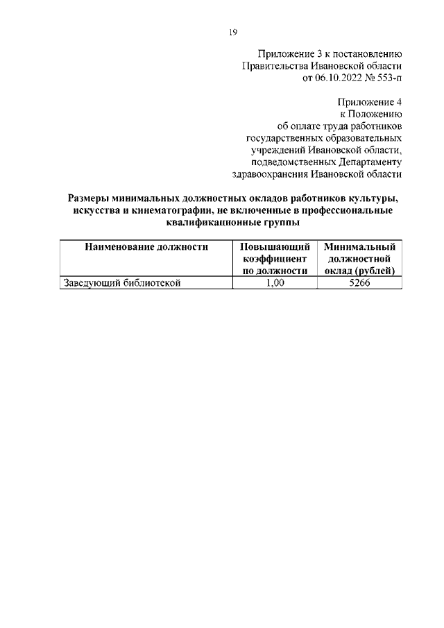 Постановление Правительства Ивановской области от 06.10.2022 N 553-п "О внесении изменений в постановление Правительства Ивановской области от 30.12.2015 N 642-п "О системе оплаты труда работников государственных учреждений Ивановской области, подведомственных Департаменту здравоохранения Ивановской области"