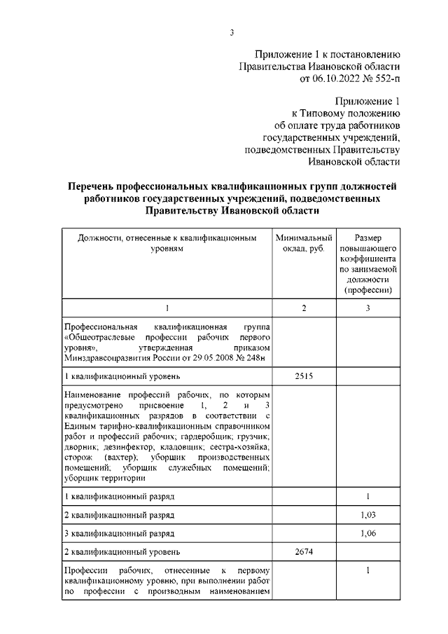Постановление Правительства Ивановской области от 06.10.2022 N 552-п "О внесении изменений в постановление Правительства Ивановской области от 31.12.2008 N 372-п "О системе оплаты труда работников государственных учреждений, подведомственных Правительству Ивановской области" (вместе с "Перечнем профессиональных квалификационных групп должностей работников государственных учреждений, подведомственных Правительству Ивановской области")