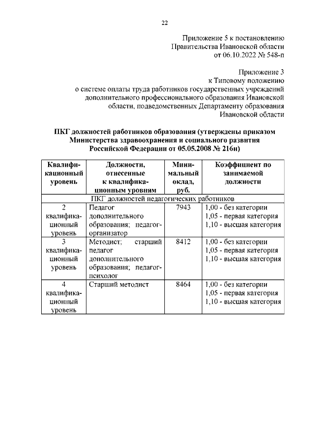 Постановление Правительства Ивановской области от 06.10.2022 N 548-п "О внесении изменений в постановление Правительства Ивановской области от 31.12.2008 N 371-п "О системе оплаты труда работников государственных учреждений Ивановской области, подведомственных Департаменту образования Ивановской области"