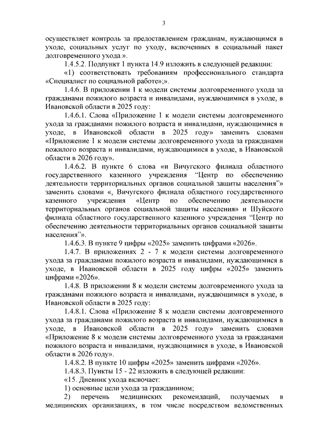 Постановление Правительства Ивановской области от 12.03.2026 N 85-п "О внесении изменений в постановление Правительства Ивановской области от 18.10.2023 N 486-п "О реализации в 2025 году модели системы долговременного ухода за гражданами пожилого возраста и инвалидами, нуждающимися в уходе, в Ивановской области"